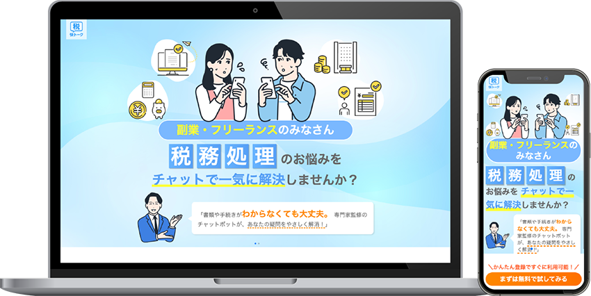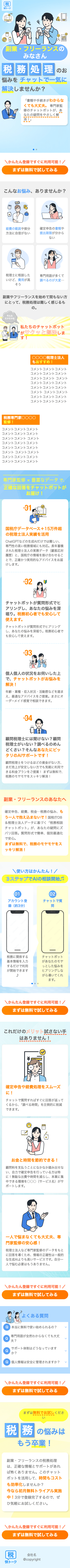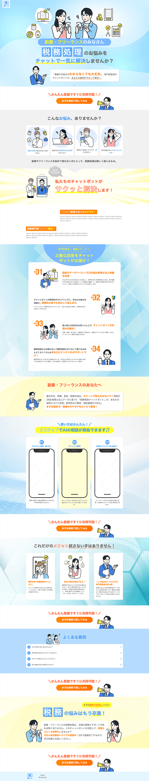 副業やフリーランスを対象に、税務処理の課題を解決するチャットボットAIサービスの利用促進を目的としたランディングページを制作しました。